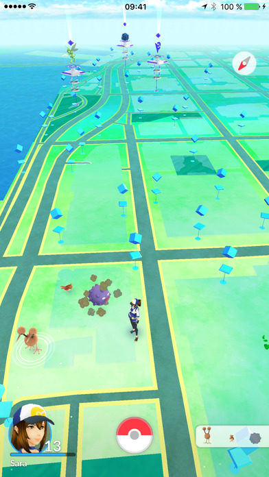 Bei dieser App geht es darum auf zufällig auftauchende Pokémon Pokébälle zu schießen um diese zu fangen. Bälle gibt es an sogenannten Pokéstops, die sich an vorgegebenen Punkten wie Häuser oder Statuen befinden. Dabei bewegt man sich in der Stadt und kann dank der Augmented Reality (AR) die kleinen Monster in der Umgebung sehen, während das GPS die Position des Spielers an die Server von Niantic schickt. Seine besten Fänge können dann in Arenen zum Kampf antreten.