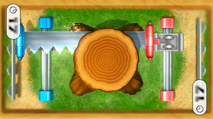 Die Gamepad-Spiele sind perfekt für zwei Personen geschaffen. Es gibt Tischfußball, Tisch-Baseball, Tischparcours, Tier-Memory, Block-Puzzle und Aus-3-mach-1. Dann gibt es aber auch die Tisch-Minispiele. Beim Kopf-an-Kopf-Modus ist man meist abwechselnd dran und muss möglichst schnell etwas anklicken, oder man kämpft im wahrsten Sinne des Wortes gegeneinander. Gut kooperieren muss man bei den anderen Spielen, wenn man möglichst schnell einen Baum umsägen oder einen Fisch fangen muss.